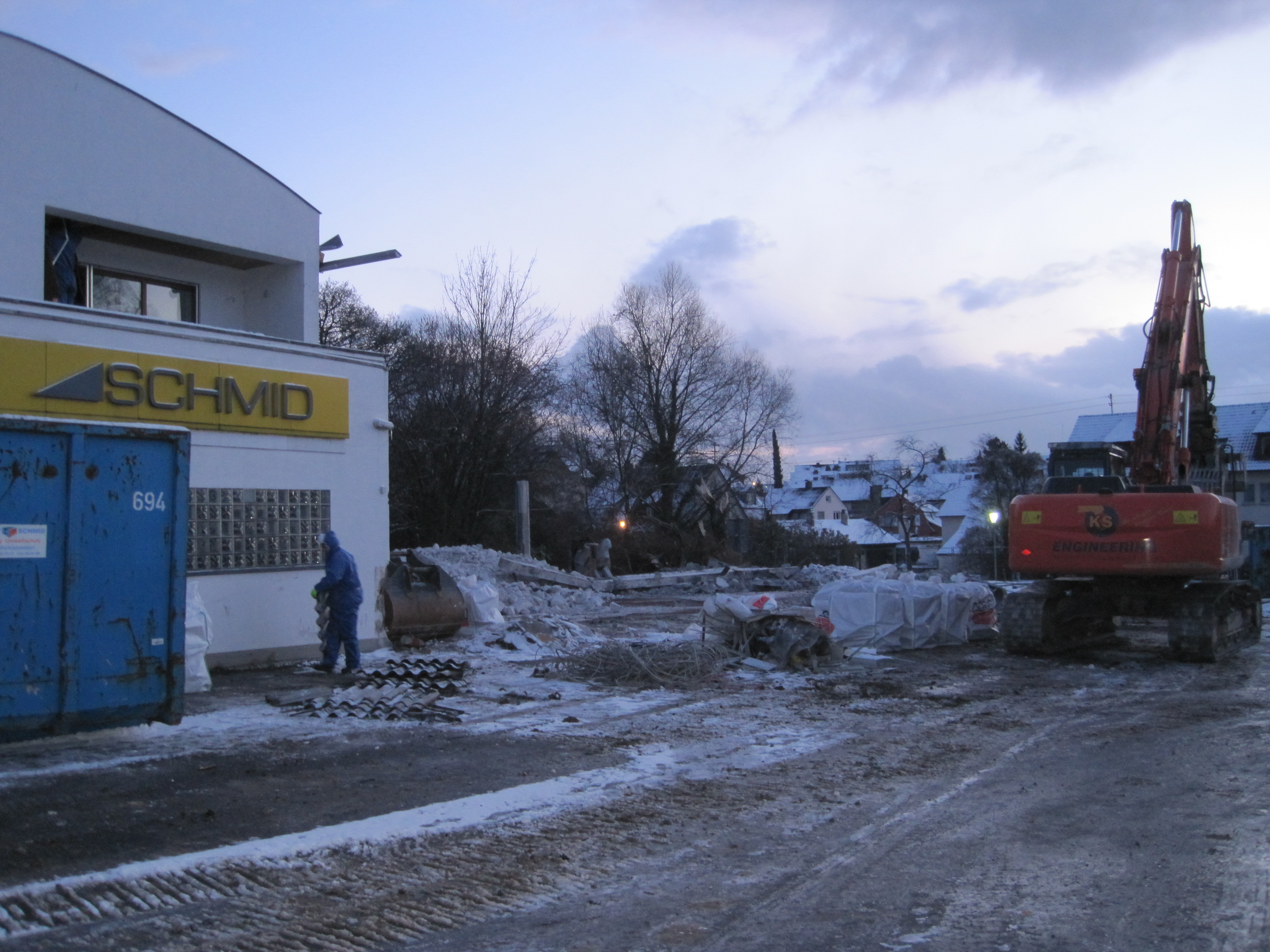 Anfang Dezember 2012 begann die KS Engineering GmbH mit den Rückbauarbeiten am ehem. Autohaus Schmid in Meersburg. Nach Entkernung und Asbestsanierung begann in KW 49 der maschinelle Abbruch von ca. 3.000 m³ UBR, sowie von ca. 1.600 m² Asphaltfläche. Die Arbeiten werden in KW 02/2013 abgeschlossen.